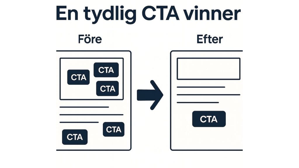 Det kan kännas logiskt att lägga till fler knappar, fler formulär och fler kontaktvägar för att öka chansen att någon hör av sig. Men ofta blir resultatet det motsatta. När sidan ropar om uppmärksamhet åt alla håll blir det svårt för besökaren att förstå vilket steg som är rätt. Hitta en tydlig uppmaning per sida till att börja med.