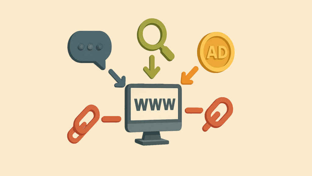 - Organisk trafik – gratis klick från sökmotorer som Google och deras AI-baserade svar (AI Overviews, Bing Copilot, ChatGPT-sök)